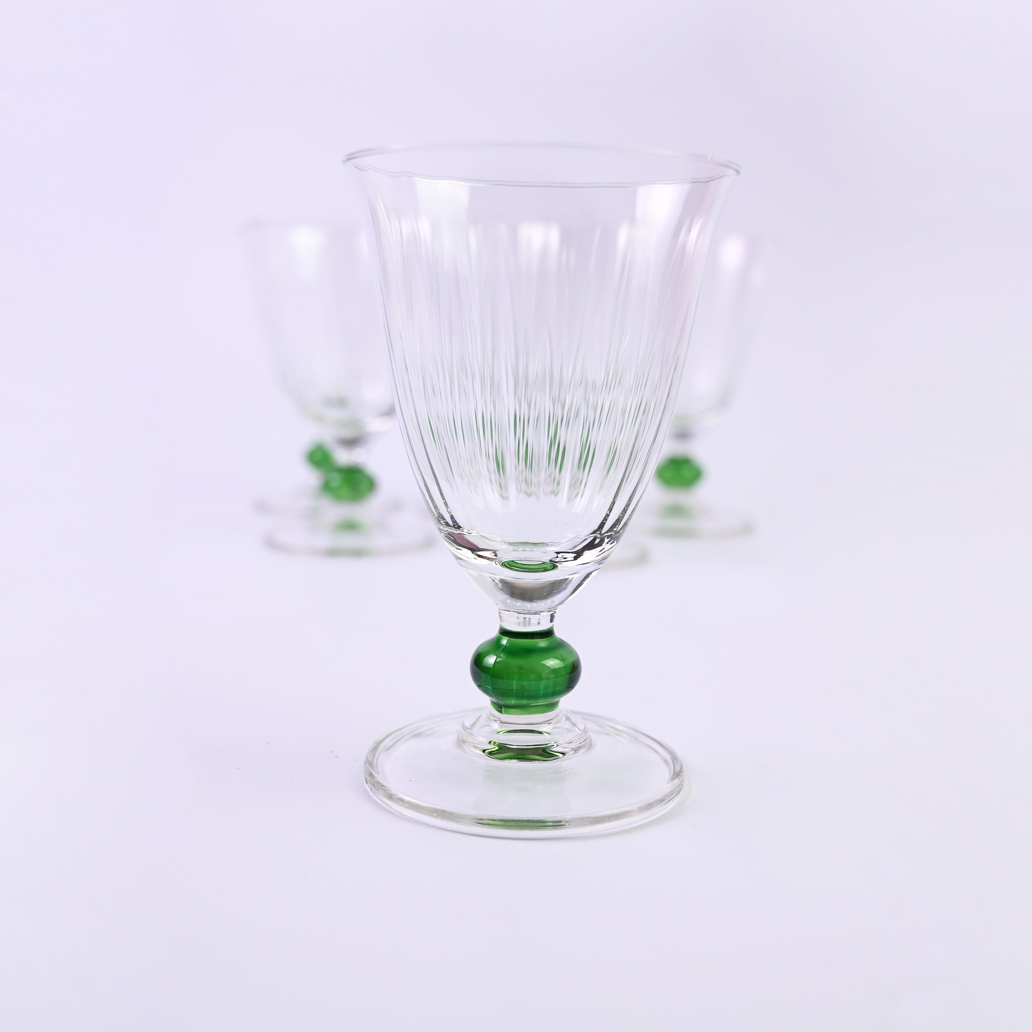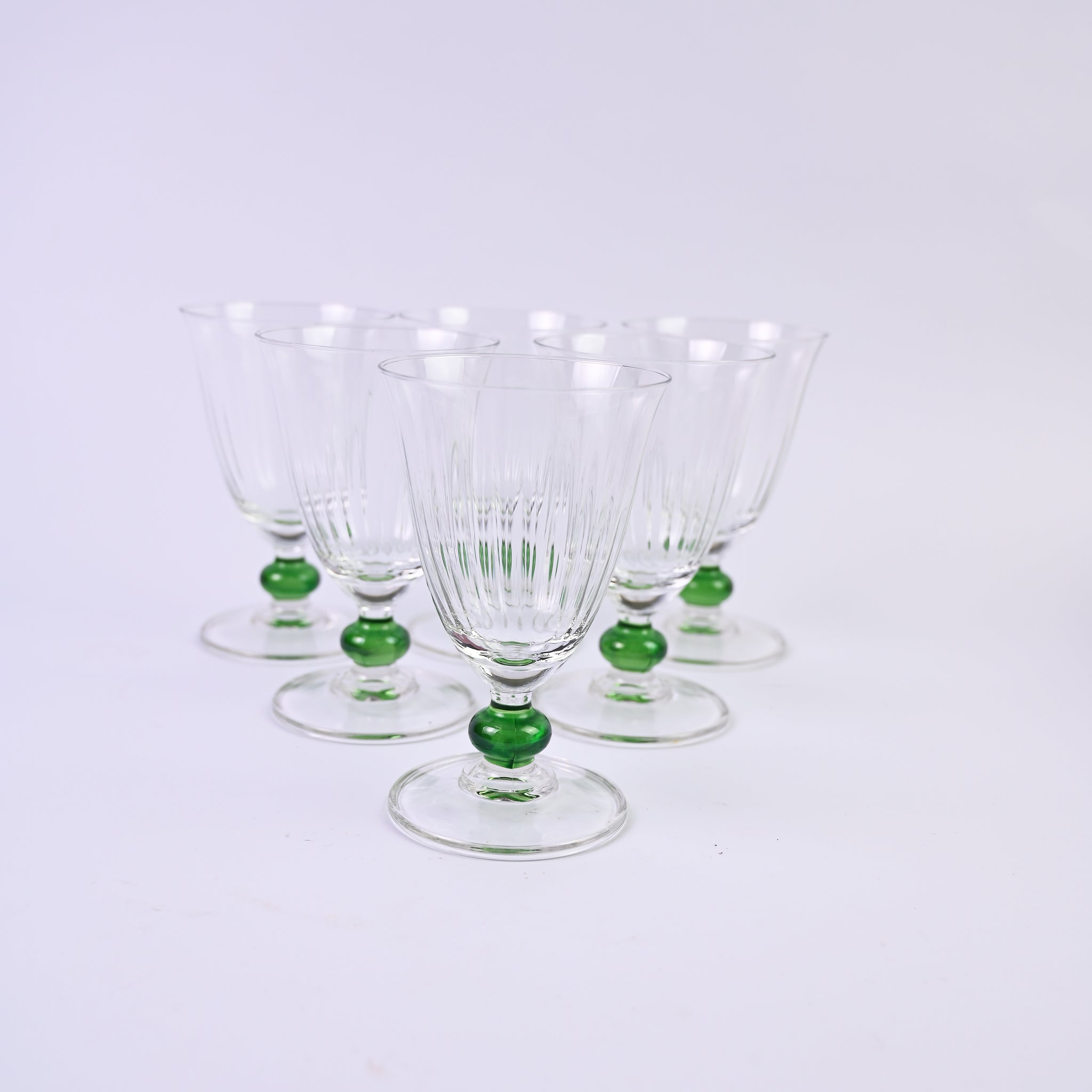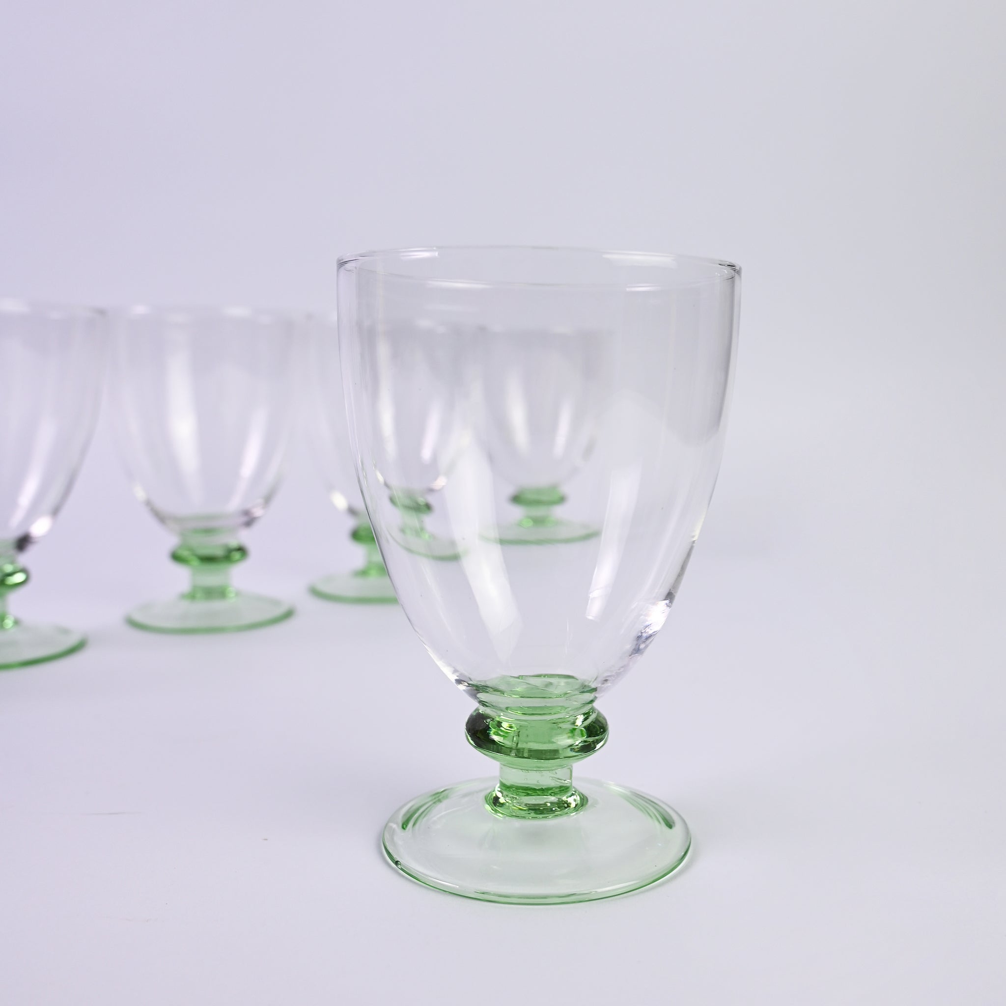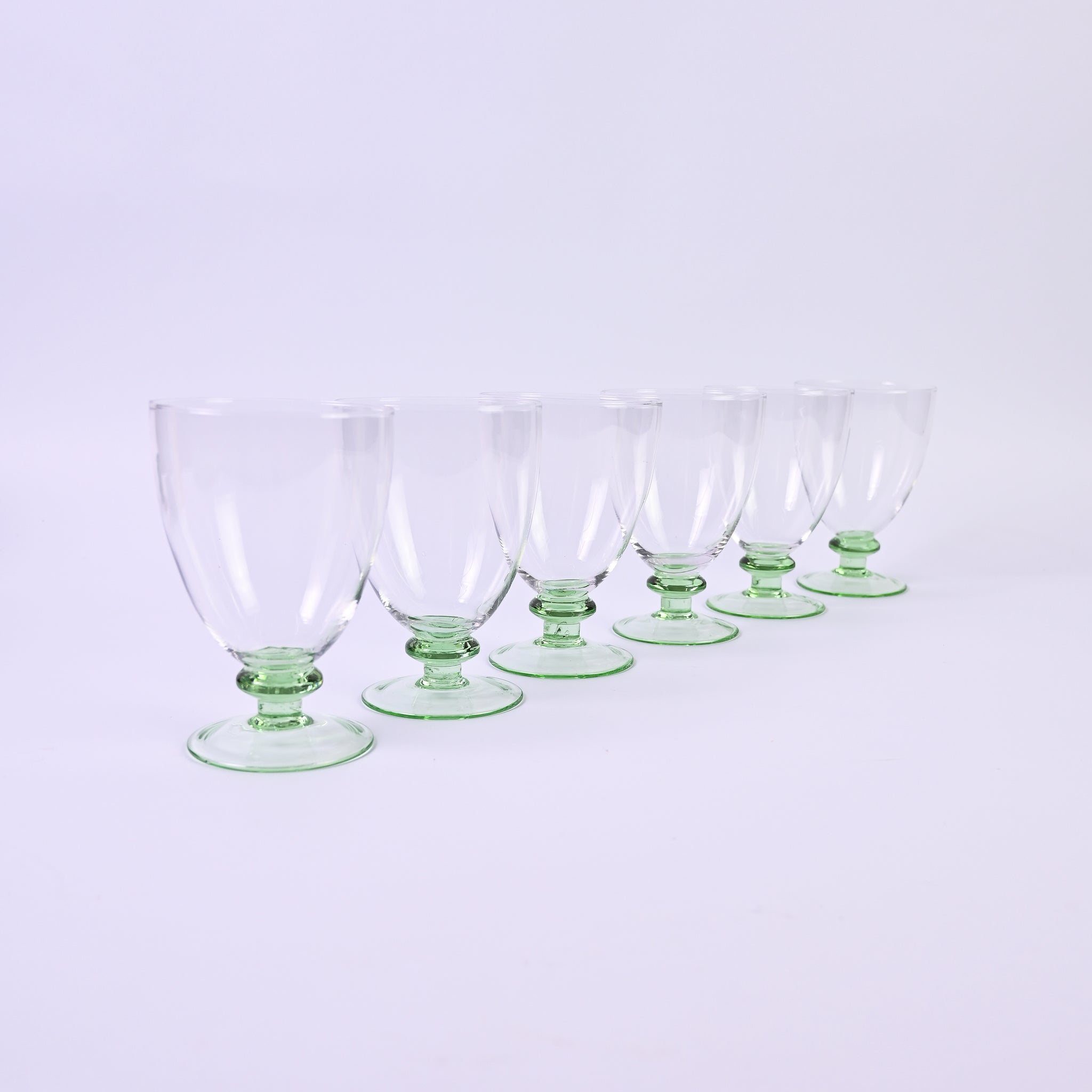 Set of six elegant, beautiful short wine glasses with soft green base. H - 12...