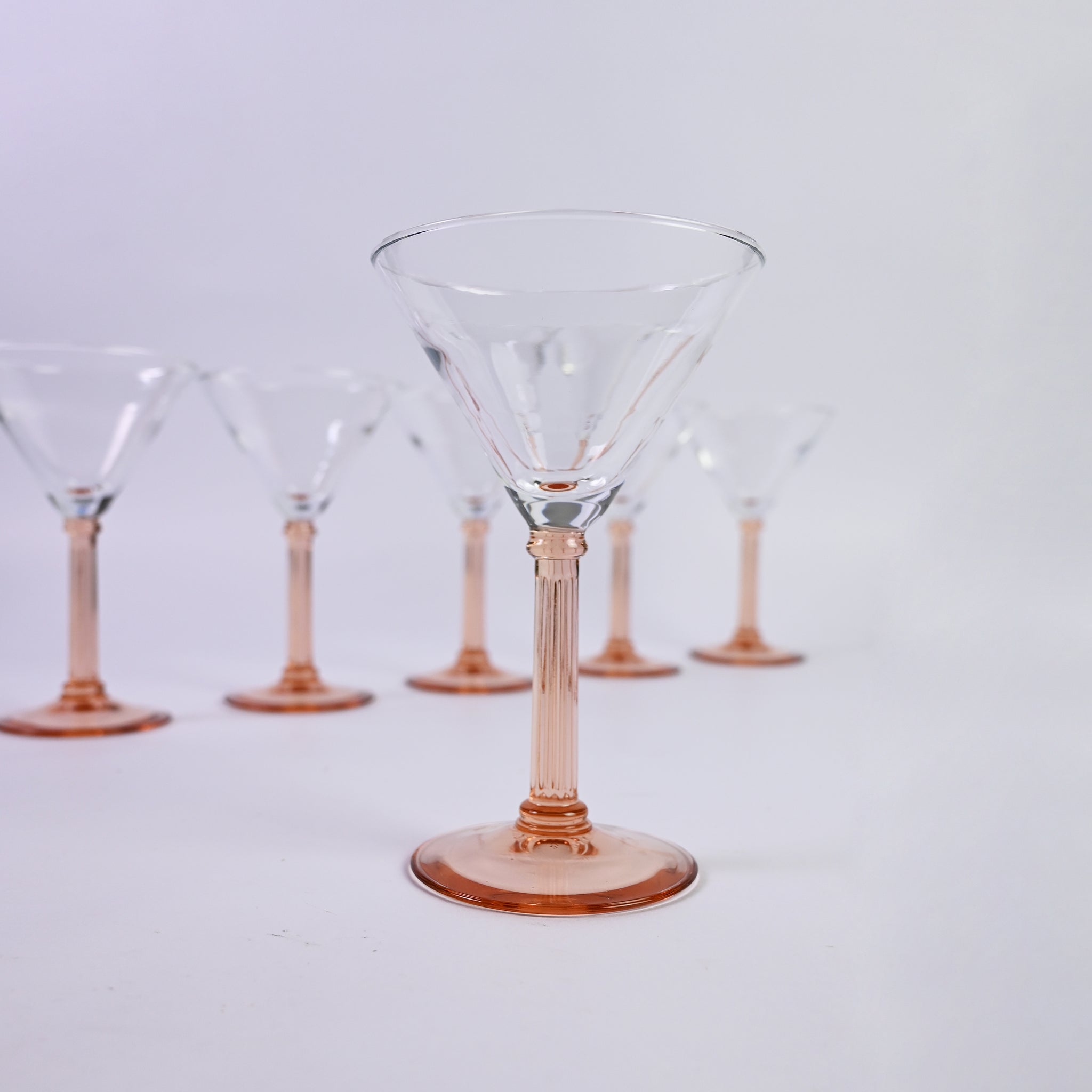 Set of six elegant, long stemmed Peach luminarc cocktail glasses. Great for a Martini, shaken or...