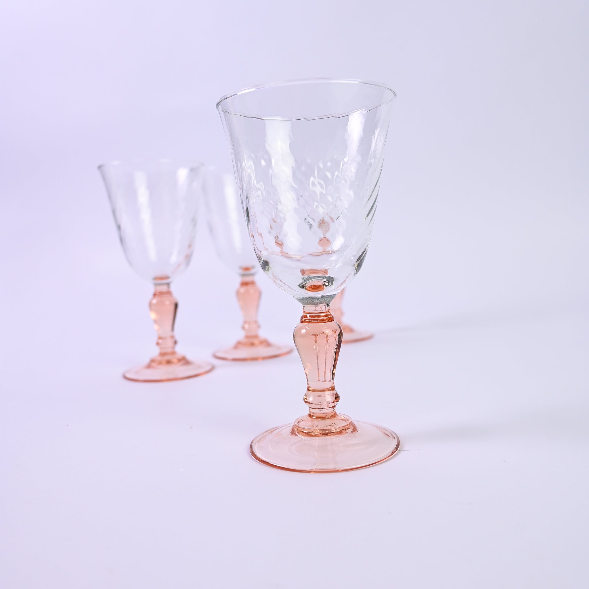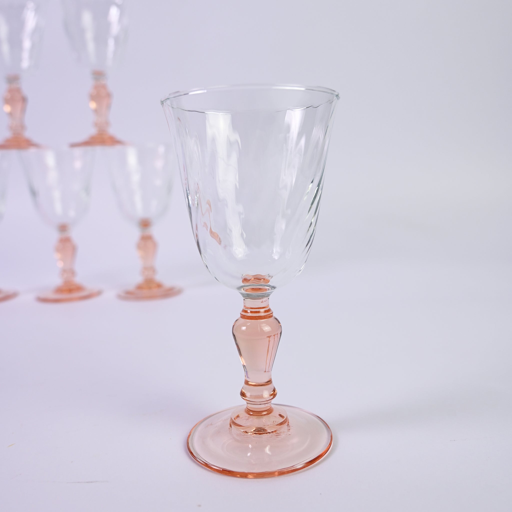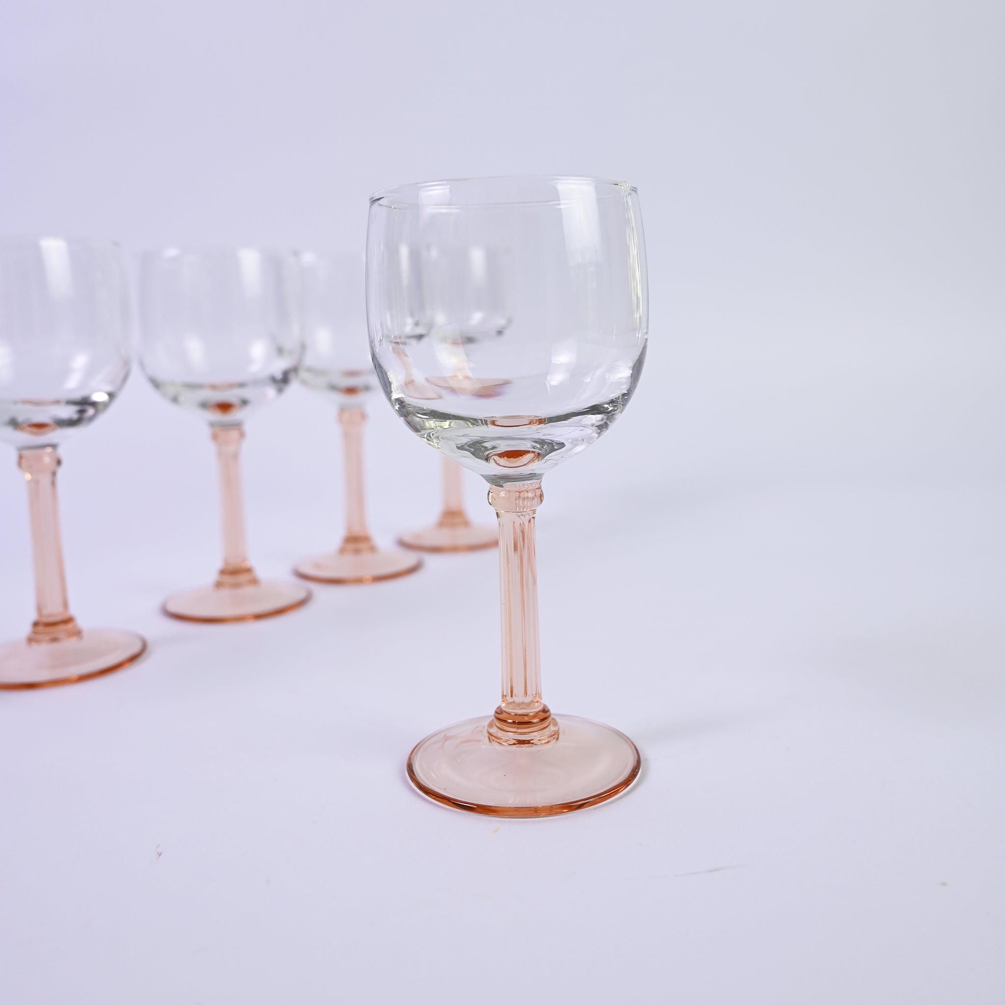 Set of six elegant, Mini Peach luminarc wine glasses with beautiful pillar stem. H -...