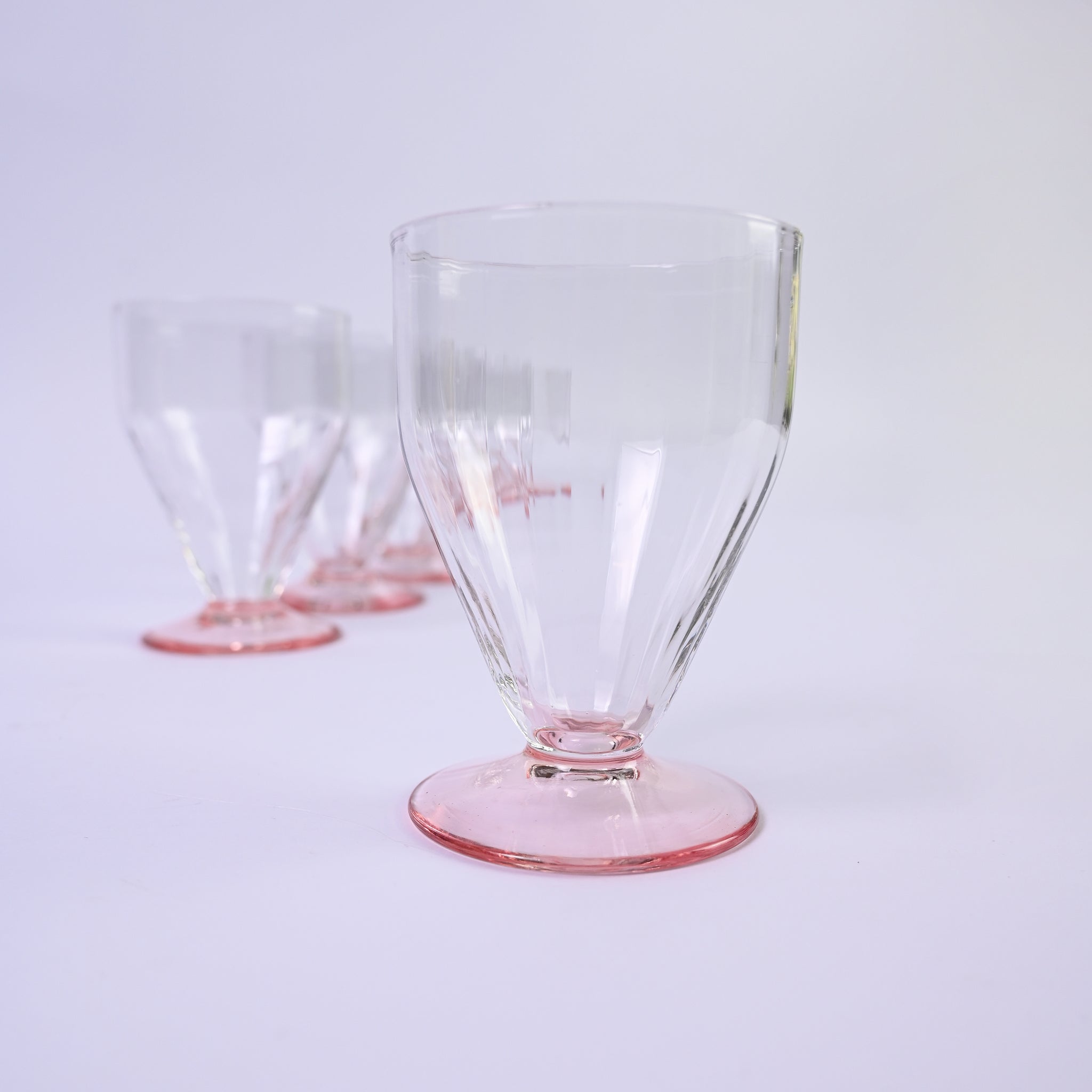 Set of six beautiful ribbed edge dessert glasses with pink base. Great to jazz up...