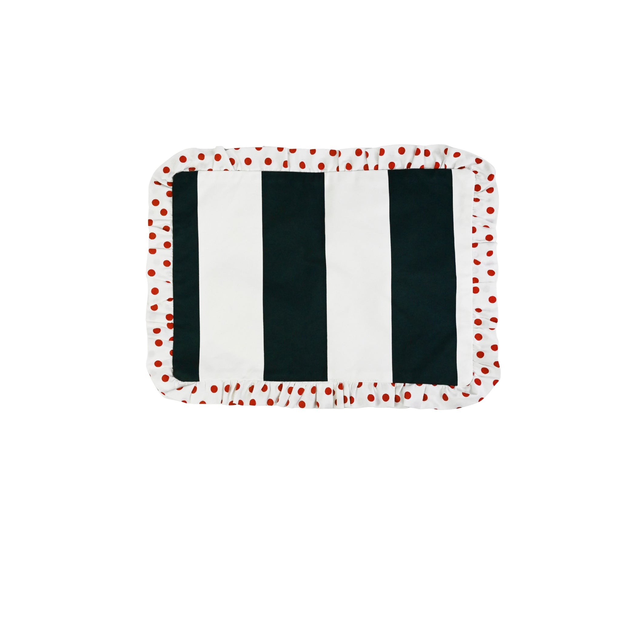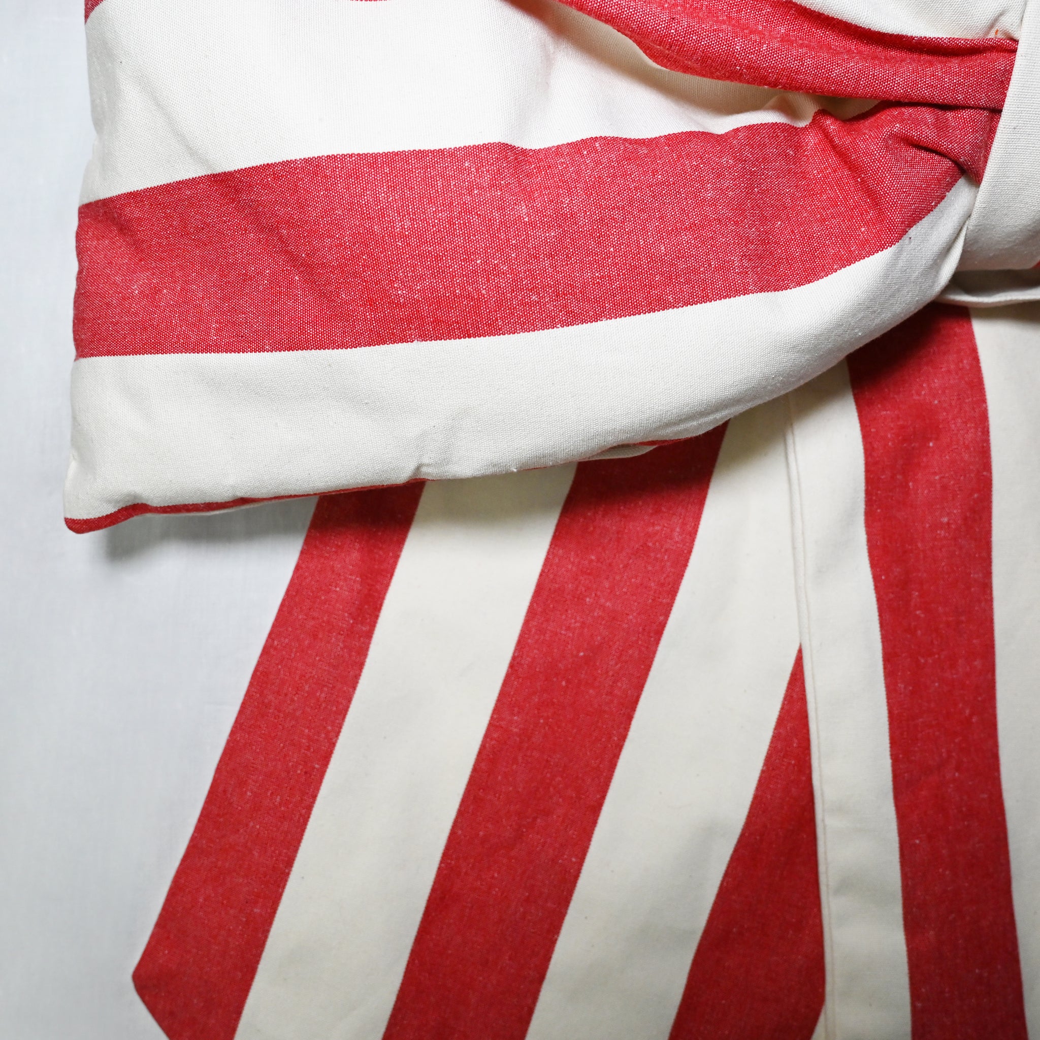 Beautiful handmade cotton table cloth with red and white striped ruffle. Mix and match with...