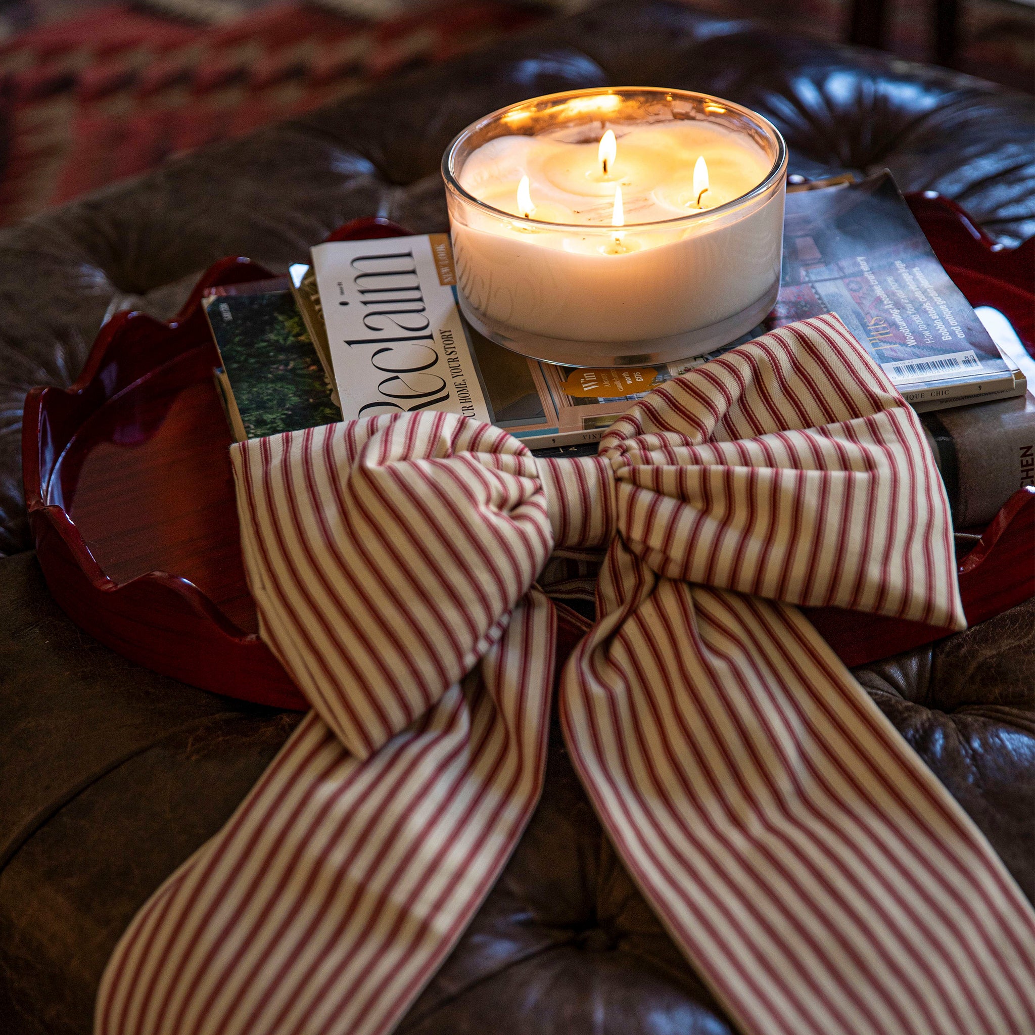 The most incredible ginormous bow, handmade in the UK with Ian Mankin Devon Stripe Peony....