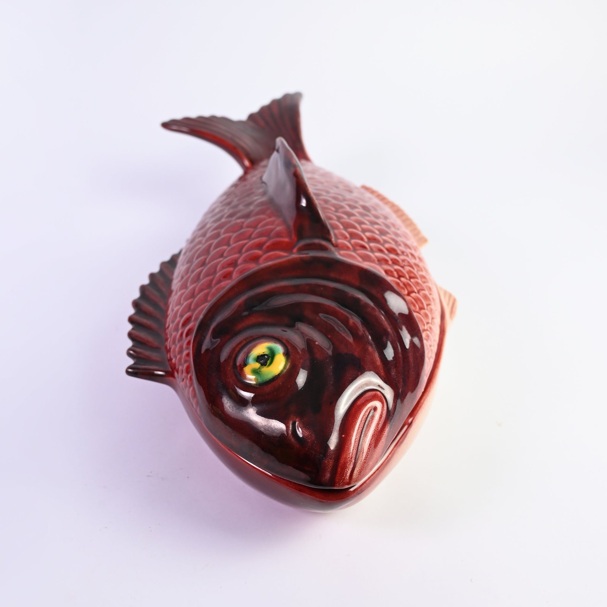 A beautiful upside down ceramic fish boat dish- would look great on any table! W...