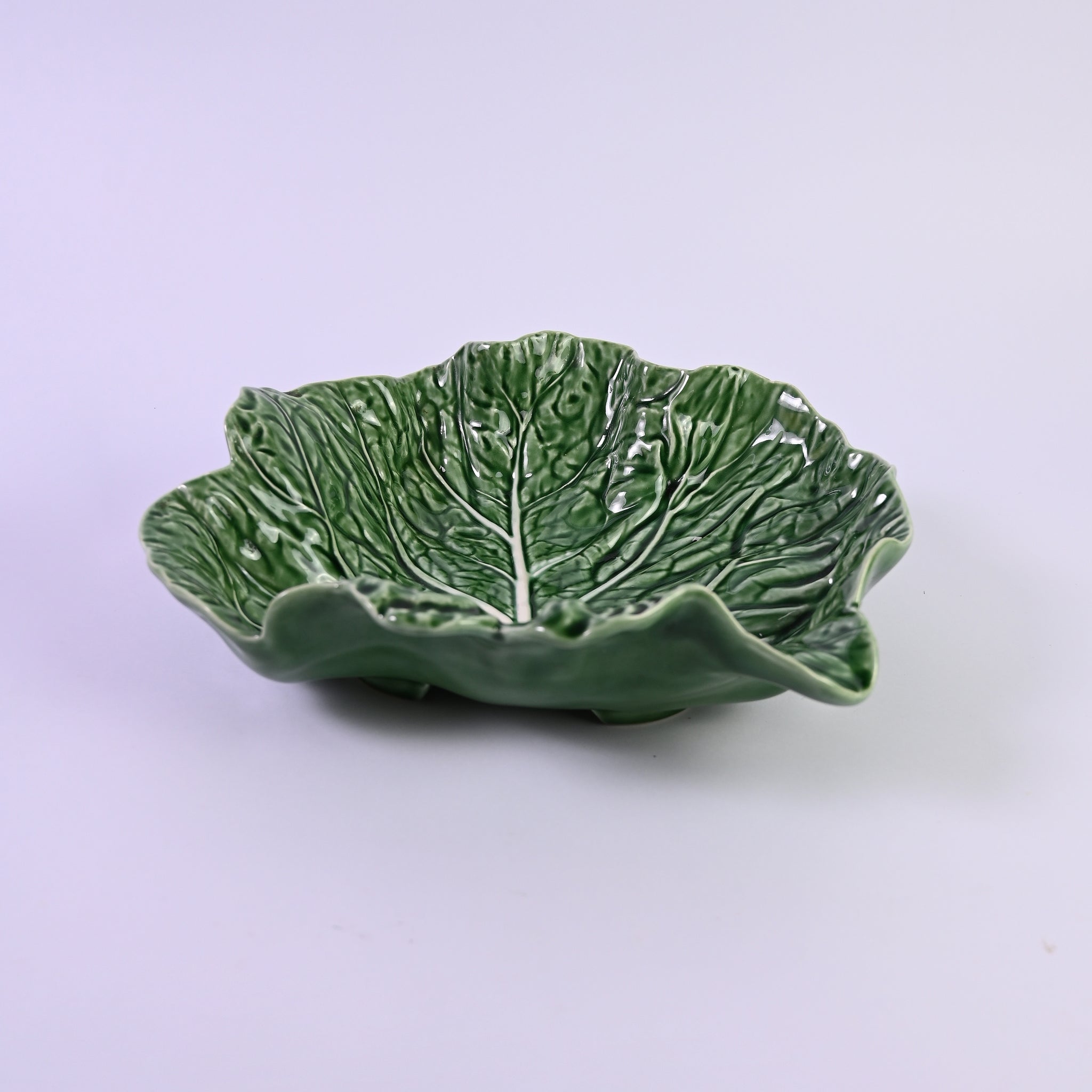 Beautiful Ripple edged cabbage leaf serving bowl. Filled with fruit, potatoes or sweet treats a...