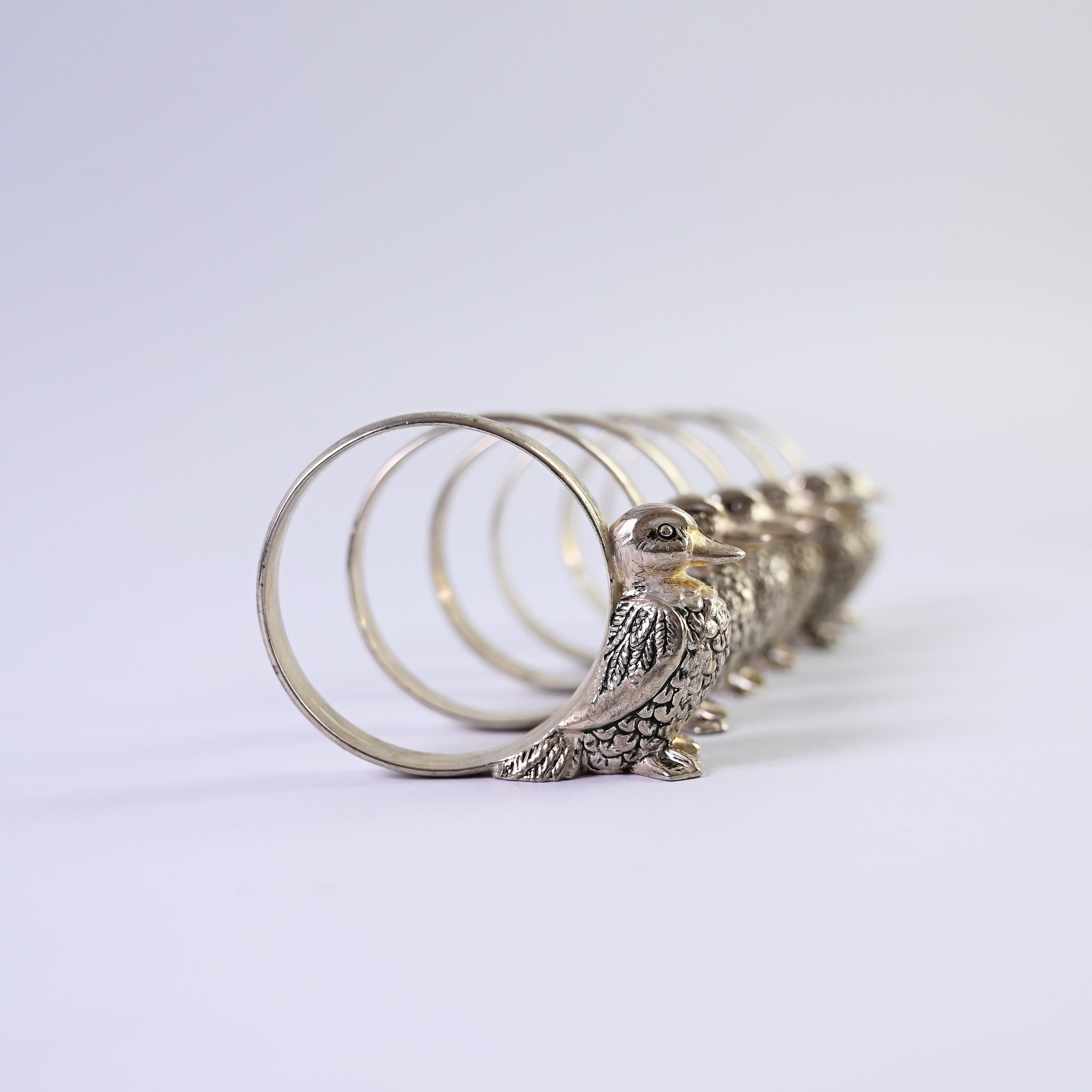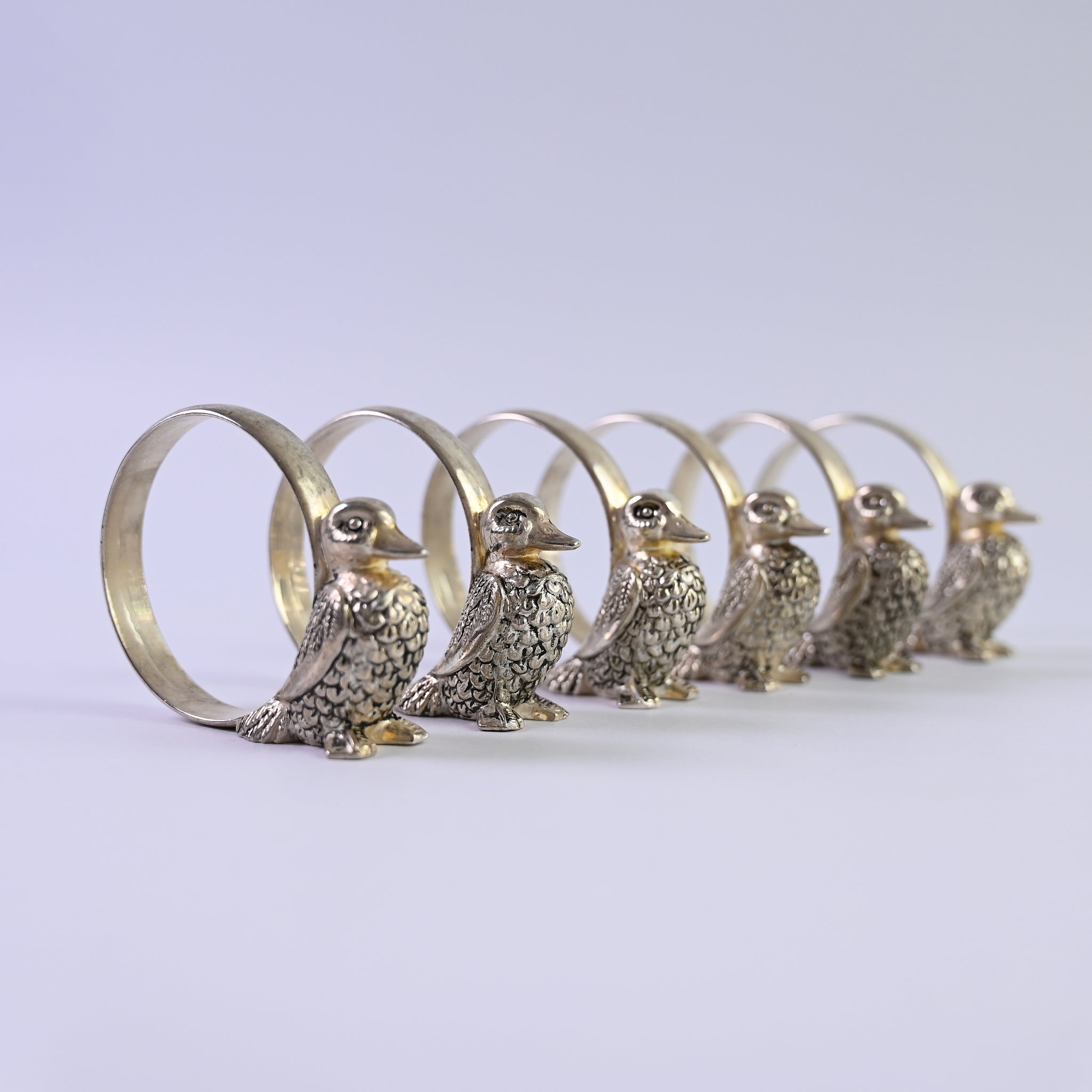 Set of six carved duck napkin rings. A beautiful addition to any table scape.